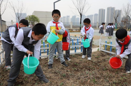 “我要看着它一点点长大,好好保护它。”学校每个班级认领一棵“班级树”,大家一起播种、一起浇水、一起收获,虽然只是种下了一棵树,但却是在每个同学的心中种下了爱校园、爱劳动、爱生活的种子,从小树立环保意识,让学生从实践中收获,在快乐中成长。